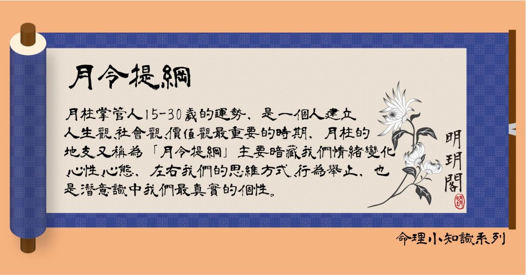 《三命通會》:「欲知貴賤,先觀月令乃提綱,次斷吉凶,專用日干為主本」;《淵海子平》:「月令者,如大臣行軍之令,掌一國之綱紀,生殺皆由之,故曰提綱是也」。可知能掌握我們命運的就是「月令提綱」了。