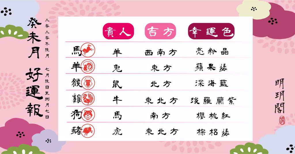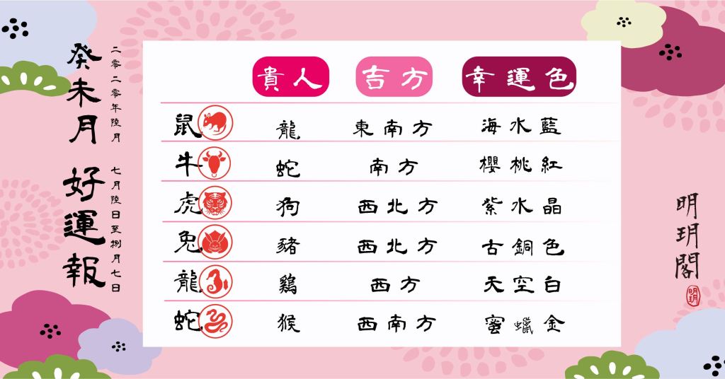 #明玥閣 #明玥女相館 #命理 #算命 #12生肖吉位 #好運報 #貴人 #幸運色 #小幸運 #癸未月 #帶給你幸運