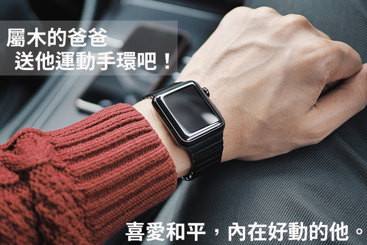 五行屬木的阿爸是個愛好和平,正直富有惻隱之心的好好先生,隨時都有人需要他,而阿爸內在是個好動、愛自由、坐不住的小夥子,送給阿爸一個運動手環,可以讓阿爸盡情地享受運動的樂趣,還不會漏接任何重要的電話或訊息。