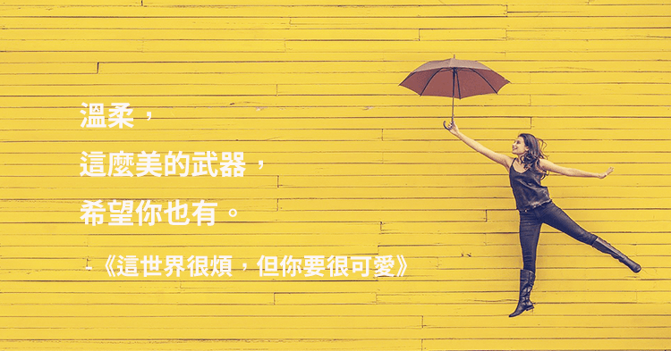 「不拚盡全力讓生活好起來,就沒有資格抱怨生活殘酷;不努力做到自己能做到的最好,就沒有權利說順其自然。什麼事情結束都可以,不倒下就是全新的契機;什麼人離開也都無所謂,但溫柔性情培養出來的美,是別人無法忽視的。」