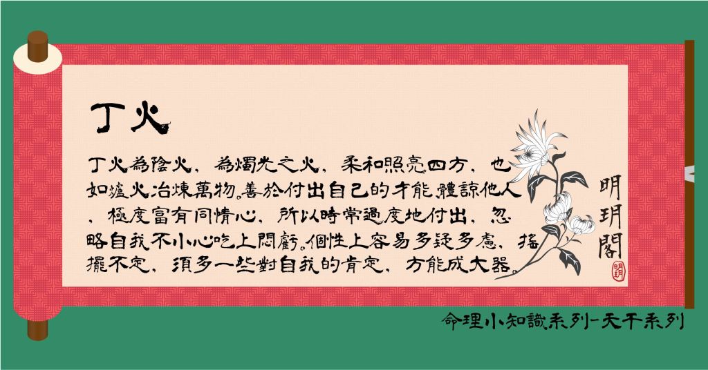 丁火為陰火,是燭光之火,柔和、照亮四方也像爐火冶煉萬物。
