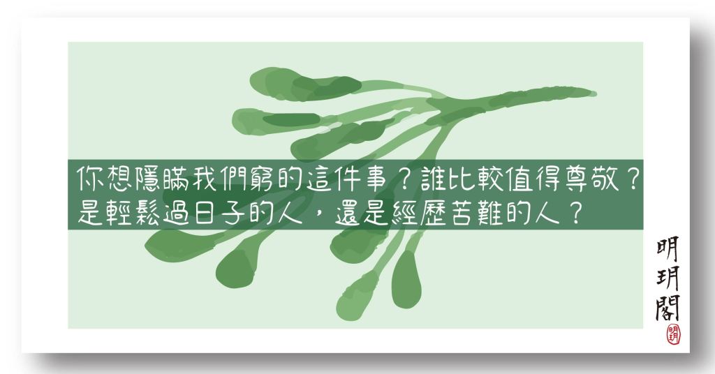 經典語錄二:你想隱瞞我們窮的這件事?誰比較值得敬佩?是輕鬆過日子的人還是經歷過苦難的人?