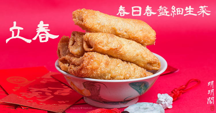 立春是24節氣之首,象徵著氣溫將逐漸回升,草木將順應季節開始生長,萬物復甦地迎來春天,所以在節氣中立春是有他的特別與重要性的。而這裡面,「咬春」是一個特別的習俗,俗話中的咬春就是吃春餅,古時的春餅要包五辛菜(蔥、薑、蒜、韭菜、香菜),目的是藉由自然新鮮的生氣來提升人的精神,排除五臟六腑中的陳舊廢氣。而春餅便是現在春捲和潤餅的前身,現在包的東西就相當富有多樣性,像是豆芽、菠菜、韭菜、雞蛋…等,比以往包五辛菜感覺好吃多了;趁著立春,可以吃潤餅或春捲,來咬一口吉祥如意,那麼今年的你也會生機勃勃啦!