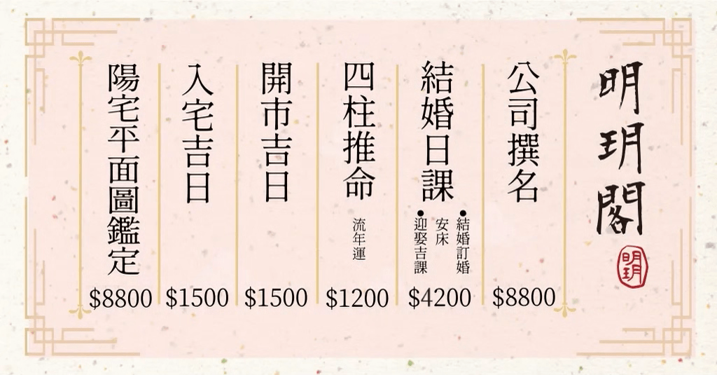 Our Story 每個命理師都有自己強項的地方,葉老師在命理界立足30多個年頭算過無數大小個案和名人,幫助許多人找到人生的方向重新站起來,就是秉持著當初創始【明玥女相館】的理念,用中國傳統千年文化的易經八卦延伸出來的名字,『玥』在古代是稱為傳說中的一種明珠,日為太陽;月為太陰, 陰陽生兩極,易有太極、始生兩儀。 也因日、王為『旺』, 讓這個『旺』字象徵著一個曙光帶領著有緣人走向更旺盛光明的未來。現在歡迎你一起加入【明玥閣】的大家庭,未來的路葉老師陪你一起渡過。 服務項目 喜歡 正在載入...