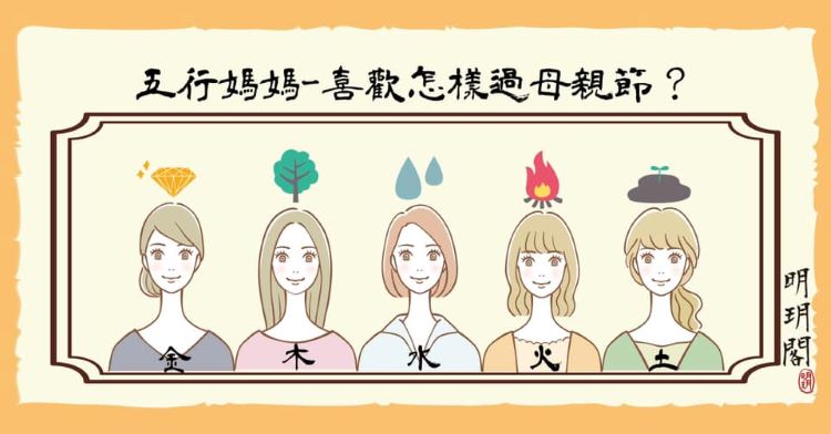 五月最浩大的節日-母親節即將到來,趁這個時候瞭解一下自己的母親是五行裡的哪一款吧!可以順道依照不同屬性來量身打